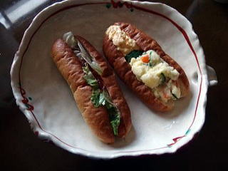 何時ものウインナーパンとサラダパン