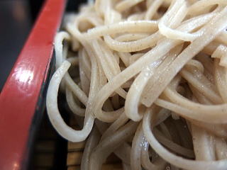 そば・・・平打ちにて白っぽい色合いの蕎麦肌 滑らかな触感もちっとした歯応え 此の日のそばの香りは不明