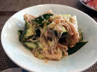 たたきキュウリの梅なめたけ和え