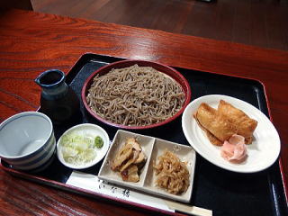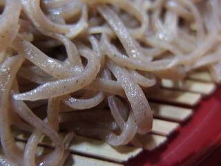 そば・・・細打ちにて黒っぽい色合いの蕎麦肌 跳ね返る弾力 滑らかな咽喉越し 此の日のそばの香りは不明