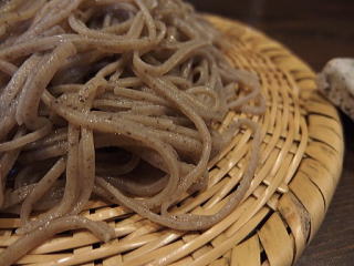 そば・・・黒みを帯びた色合いで滑らかな蕎麦肌の触感 弾力ある歯応え 此の日のそばの香りは高い