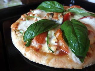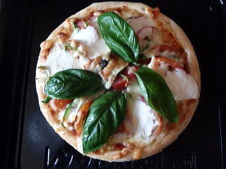 ピザ生地とチーズは「とりせん」で購入 トマトソースとトマト・バジル・野菜は自家製