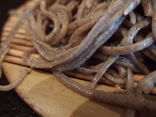 田舎そば・・・極細打ちで野趣に富んだ荒々しいそば 黒っぽい色合いの蕎麦肌 此の日のそば香りは高い