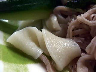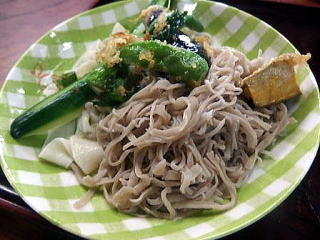 そば・・・様々な太さと長さのそば 病みつきに成りつつあります 最近は天ぷらが少なく(私にはグッド)薩摩の天ぷらが加わったり胡瓜の漬物が好い