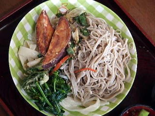 そば・・・何時もの田舎そば 此の日は私の為に天ぷらのサツマイモを揚げてくれました 更に饂飩を今から茹でるからと ちょっと待ちました