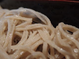 そば・・・綺麗なエッジが引き立ち少し荒々しい蕎麦肌 冷水で〆られ弾力ある歯応え好し 此の日のそばの香りは仄か