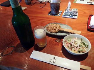 麦酒・蕎麦みそ・ちょっこっと天ぷら