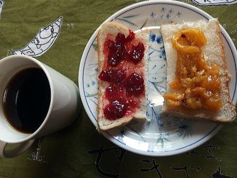水出し珈琲に自家製苺ジャムと自家製枇杷ジャム