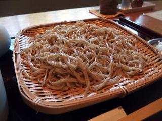 蕎麦・・・平打ちにて滑らかな触感 啜ると落語家が演じる音がする 白い色合いの蕎麦肌に粒々が見える