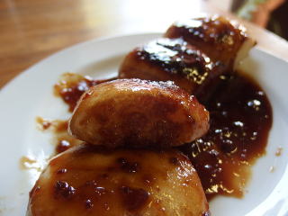 食べる直前に甘い味噌ダレを付ける
